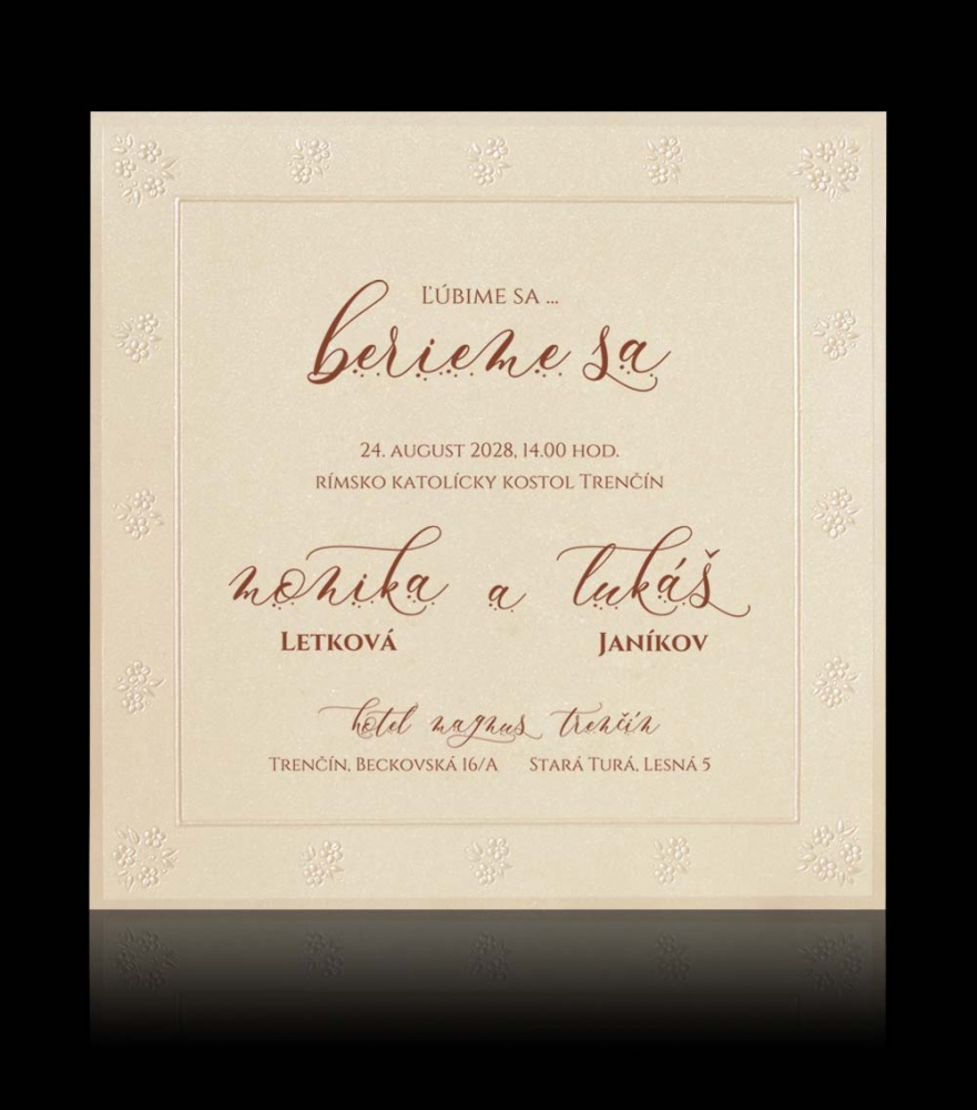 Dakujem velmi pekne za oznamenia ktore som si u Vas objednala. Hladala som nieco jednoduchsie ale zaroven decentne a jedine Vy ste mi to ponukli. Zaroven som velmi spokojna s pristupom nakolko som na poslednu chvilu zmenila pocet kusov a nebol absolutne ziaden problem vyhoviet mi. Este raz dakujem