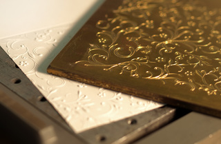 Za použitia razníc sa pri vysokom tlaku vytvára na papieri štruktúra. Na papier sa prenesie motív z razníc. Získava sa tým plasticita a lom svetla na plochách dodáva výrobku nezvyčajný efekt.